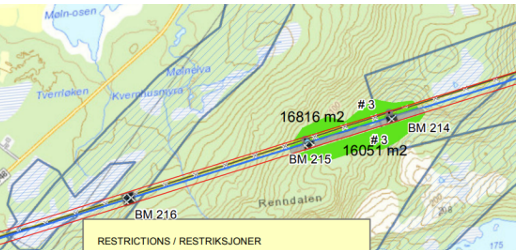 Kart over området for landskapshogst på Tjeldøya i Troms. Kilde. NVE