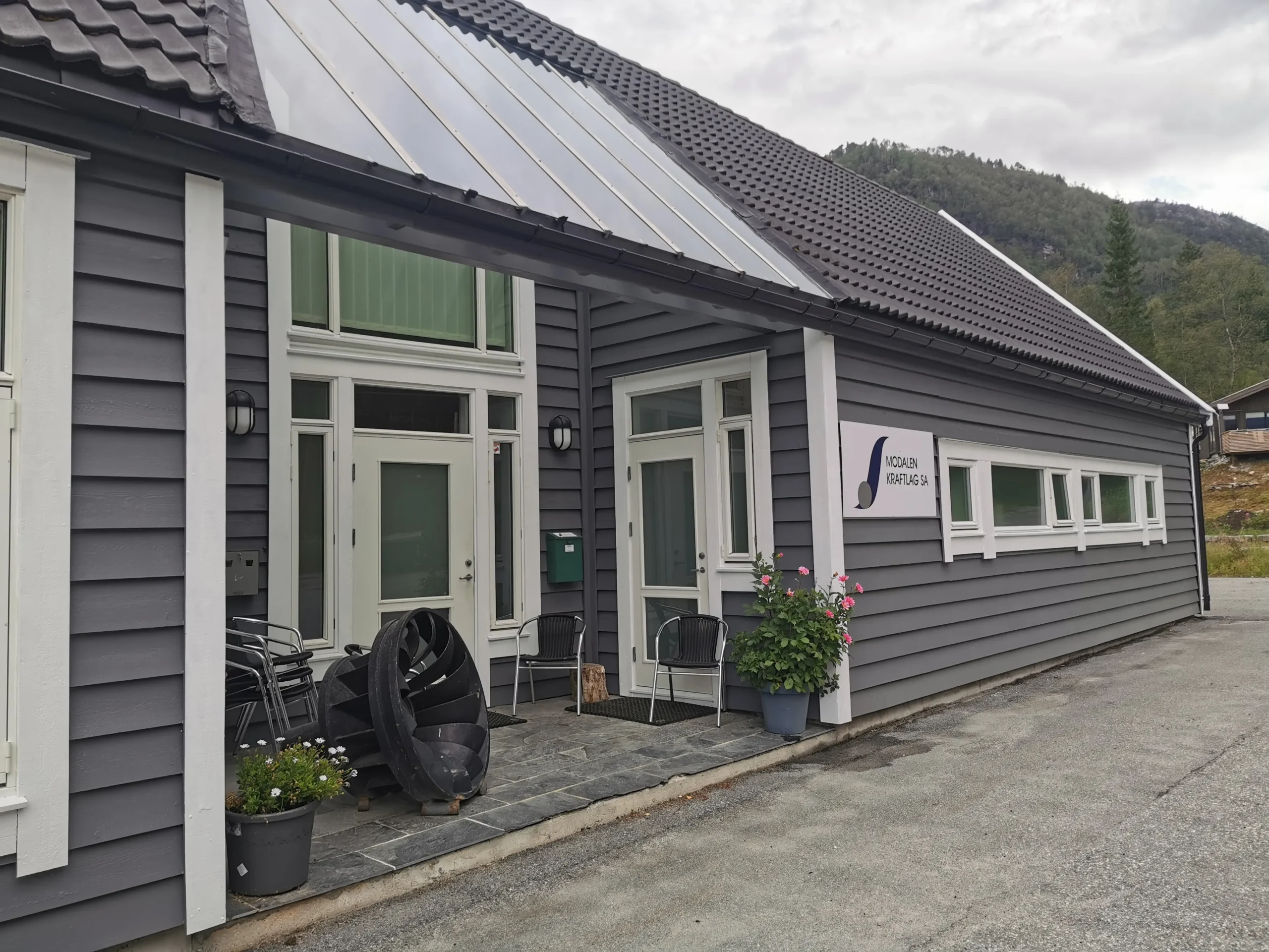 Adminstrasjonsbygget til Modalen Kraftlag. (Foto: Modalen Kraftlag)