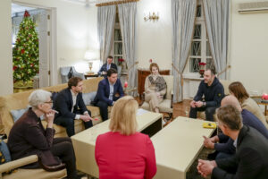 Kudrytskyi, her i et møte med en amerkansk delegasjon i Kyiv ett år etter krigsutbruddet, har mange erfaringer etter intense år i sjefsstolen i Ukrenergo. (Foto: US Department of State)