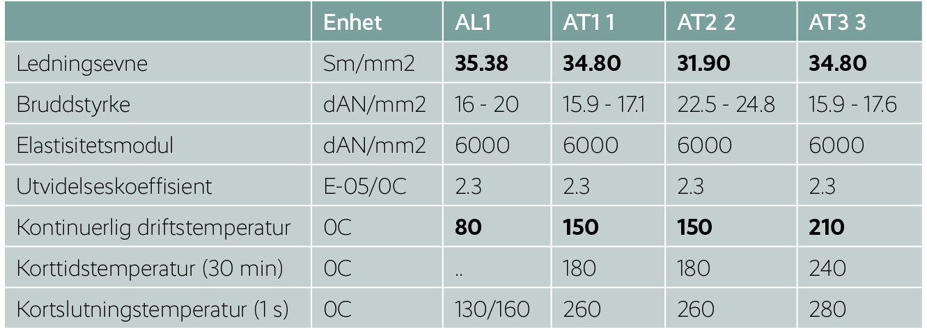 høyere enn konvensjonelle Al/St-ledere med samme tverrsnitt. I tillegg gir høyere kortslutningsegenskaper økt driftsikkerhet.