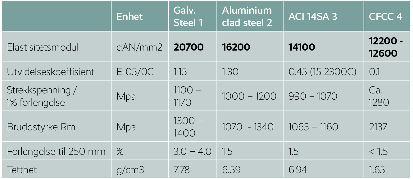 For å designe en line som gir mindre sag ved høyere temperatur må man også gjøre noe med det bærende element. Her er det flere løsninger tilgjengelig, f.eks, Aluminium clad steel, ACI (INVAR) og CFCC – som beskrives i tabell 2.