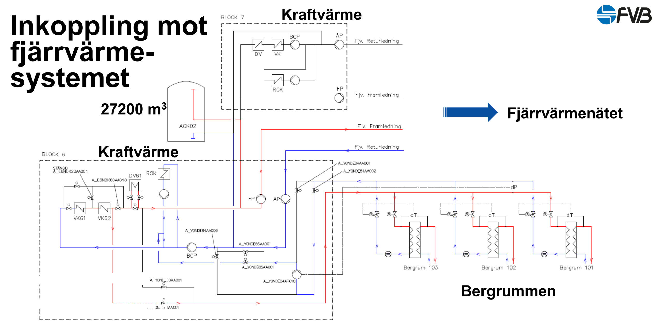 Hovedkildene til fjernvarmen i Kristiansand er overskuddsvarme fra industribedriften Glencore og avfallsforbrenningsanlegget Returkraft, som passer perfekt å kombinere med et uke-lager.