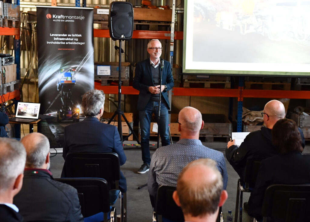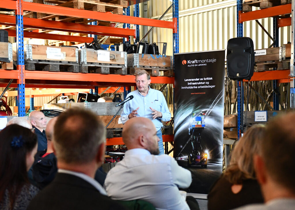 Mandag ettermiddag samlet Kraftmontasje et knippe fylkespolitikere, representanter for LO og NHO – og Fornybar Norge-sjef Bård Vegar Solhjell – til et møte i lageret ved selskapets hovedkontor i Vestnes i Møre og Romsdal.