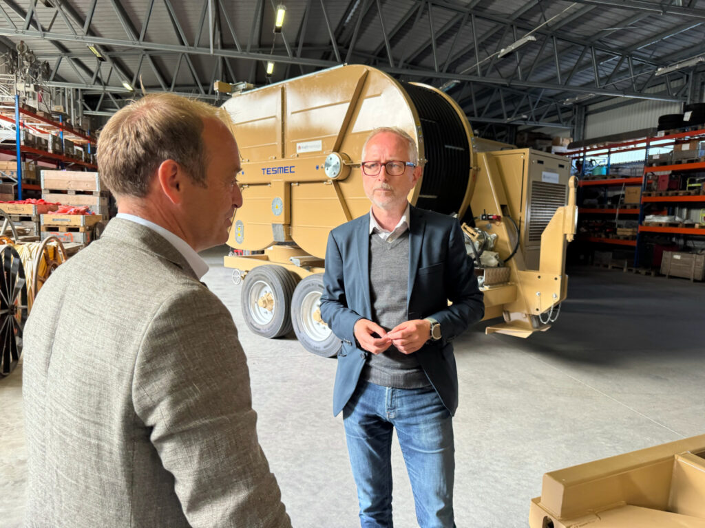 I lagerhallen på Vestnes står det skinnende, nytt 14 tonns vinsj- og bremseutstyr, spesielt egnet til å dra Statnetts duplex-ledninger, som energientreprenøren verker etter å sette i arbeid.