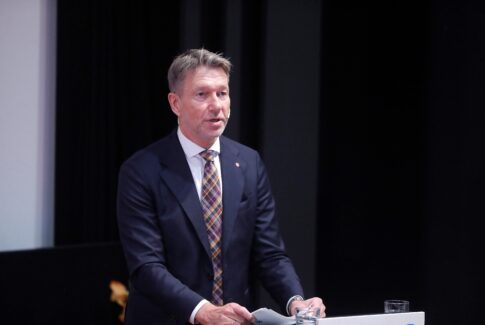 Norgessjef i Google, Tine Austvoll Jensen og digitaliserings- og forvaltningsminister Karianne O. Tung ved byggestart for datasenteret på Gromstul utenfor Skien. (Foto: Matias Fosso)
