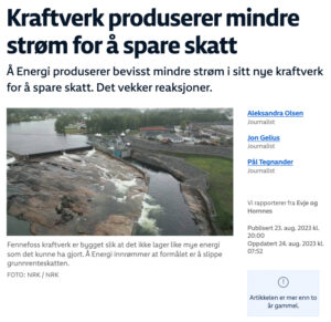 “Kraftverk produserer mindre kraft for å spare skatt“, slås det fast i tittelen på saken.
