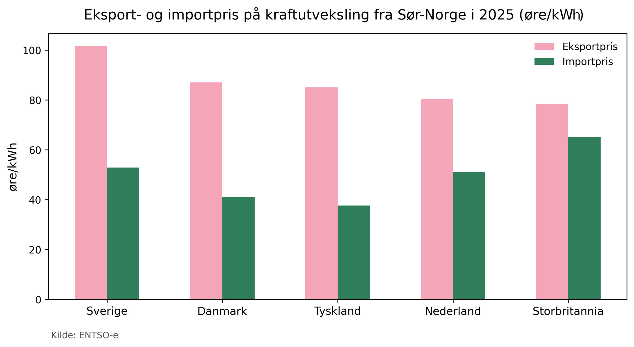 Eksportverdien av kraft fra Sør-Norge i 2025 var om lag 23 milliarder kroner, der rundt 90 prosent av verdiene kom fra eksporten til UK, Tyskland og Danmark. I tillegg kommer over 6 milliarder kroner i flaskehalsinntekter til Statnett.