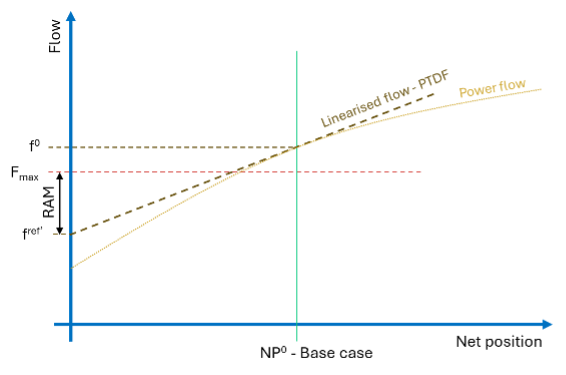Netto posisjonen i basecasen betegnes som NP0, mens den fysiske flyten betegnes som f0. Ut fra dette kan RAM beregnes med utgangspunkt i Fmax (den maksimale tillatte fysiske flyt, korrigert med fref’ som oppstår på grunn av lineariseringen).