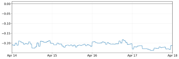Figur 4 viser område-PTDFen for perioden 14/04 – 17/04-2026 på CNECen. Denne PTDF-verdien betyr at økt produksjon i NO3 bidrar til å redusere flyten på linjen.