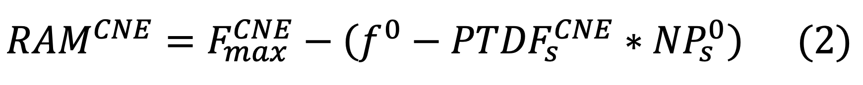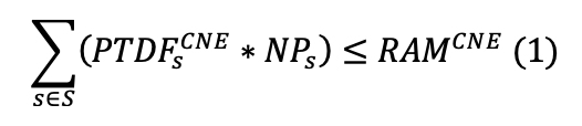 På dette stadiet kan flytbaserte restriksjoner uttrykkes som PTDFs multiplisert med netto posisjon (NP) og må være mindre enn Remaining Available Margin (RAM) for hvert enkelt CNE, som vist i ligning 1: