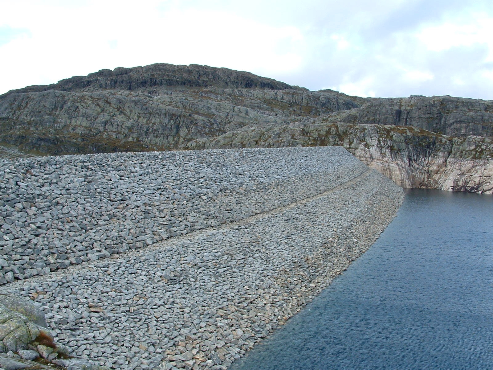 Dam Oddatjørn er landets høyeste steinfyllingsdam. (Foto: NVE)
