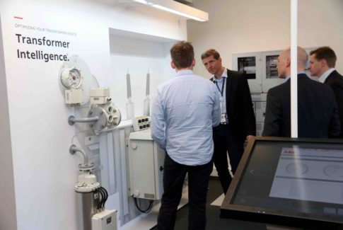 En robot plukket opp saksen og leverte den til Askers ordfører Lene Conradi. Hun kunne så klippe snoren og markere åpningen av ABBs nye kundeopplevelsessenter i hovedkontoret på Billingstad tirsdag.