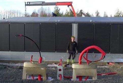 Nettpartner divisjon Drift monterer nettstasjon for Tesla Norge ved Rygge flyplass i Østfold.