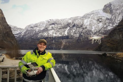 Energimontør Lars Christian Vikesland får drive med hobbyen sin på jobb for E-CO Energi. Han får kombinere jobb og hobby. Han er selskapets eneste droneoperatør.
