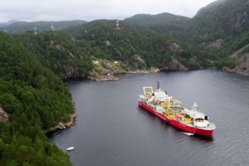 Leggingen av en undersjøisk strømkabel mellom Norge og Tyskland har startet. De første meterne er lagt på sjøbunnen i Vollesfjord i Vest-Agder.