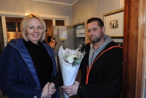 Hafslund kunne fredag overrekke blomster til AMS-kunde nr 100.000 på Fjellhamar.